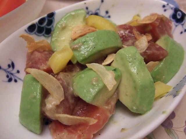 ¡¡ºî¤êÊý¡§1)¥Þ¥°¥í¤Ï¾®¤µ¤á¤Î°ì¸ýÂç¤ËÀڤ롣£²)A¤ò¹ç¤ï¤»¤ë¡££³)¿©¤Ù¤ëľÁ°¤Ë¥Þ¥°¥í¡¦¥É¥ì¥Ã¥·¥ó¥°¡¦Çò¥´¥Þ¤òϤ¨¤ë¡£ºÇ¸å¤Ë¥«¥¤¥ï¥ìÂ纬¤ò¹ç¤ï¤»¤ë¡£