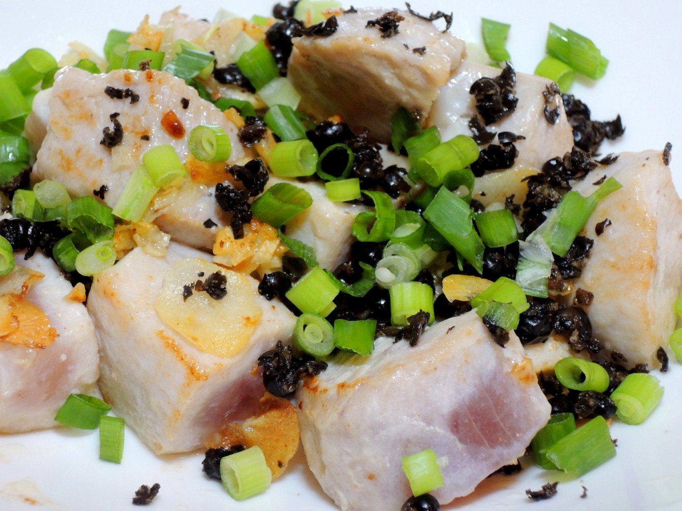 2)ニンニクはスライス、小ネギは小口切りにする