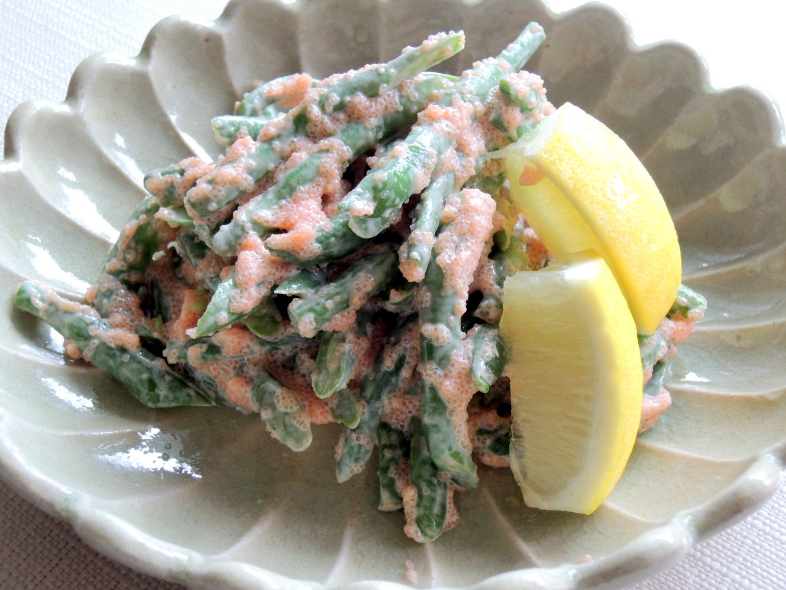皿に盛ってから、レモン汁を回しかけ