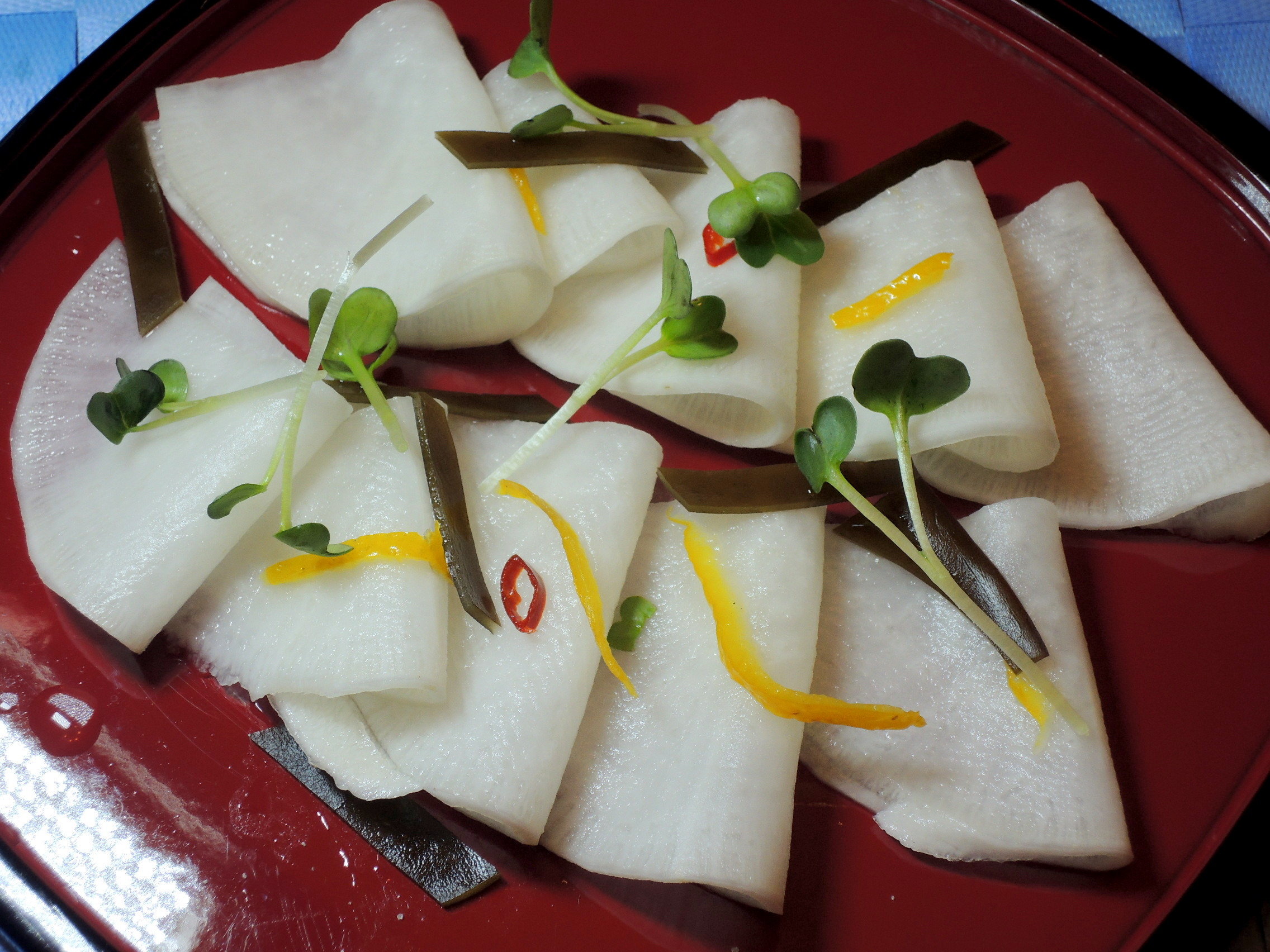 頂いた手づくりのお漬物を添えて