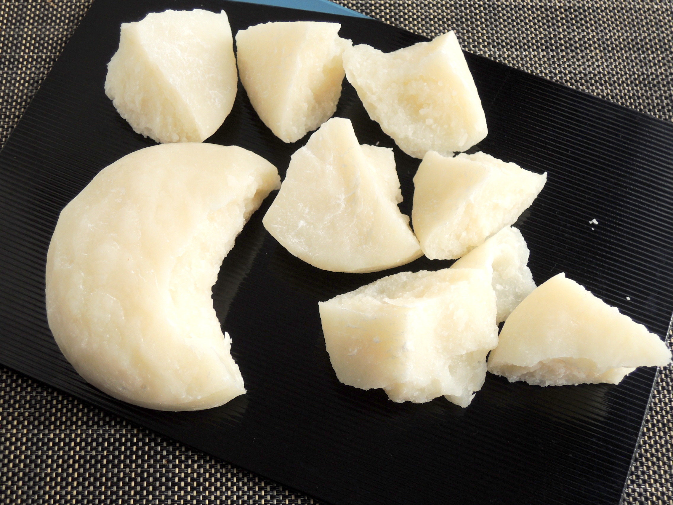 少しだけ切り込みを作ってから、手で割ります
