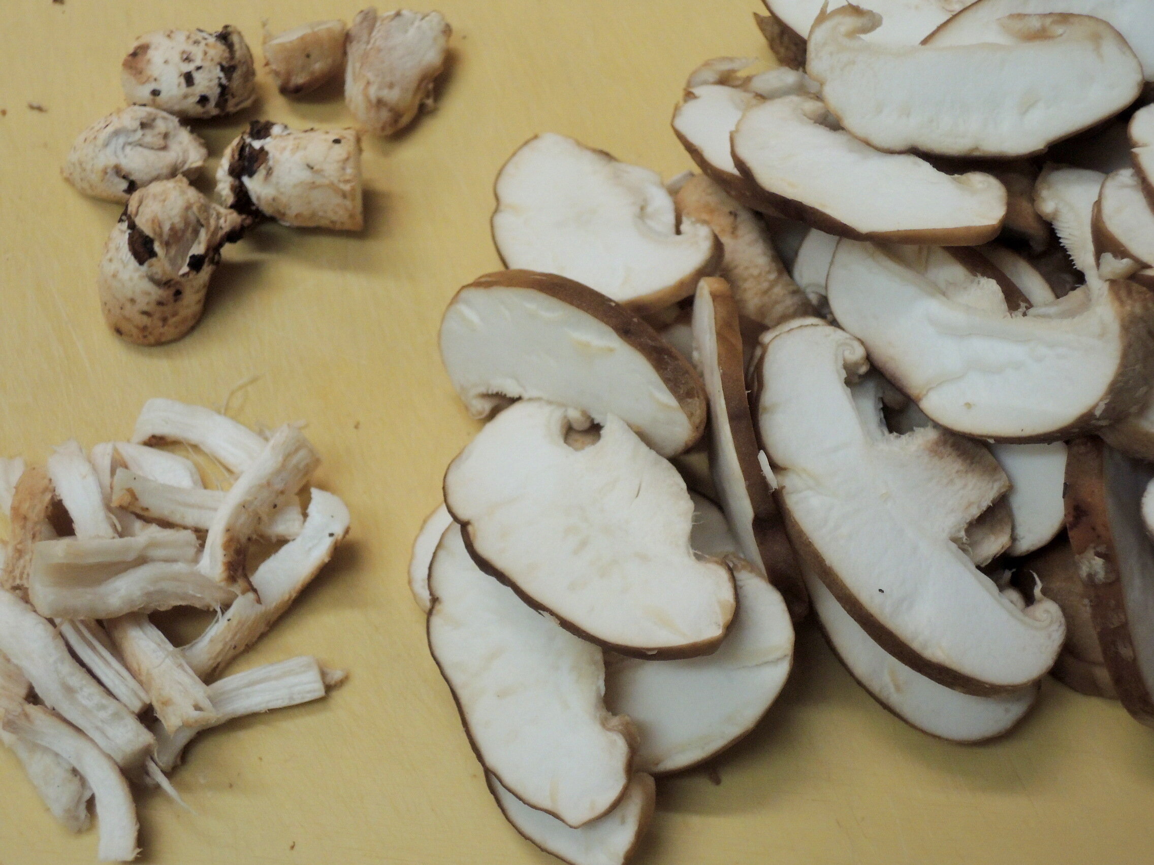 2)しいたけは、軸と石づきを切り分け