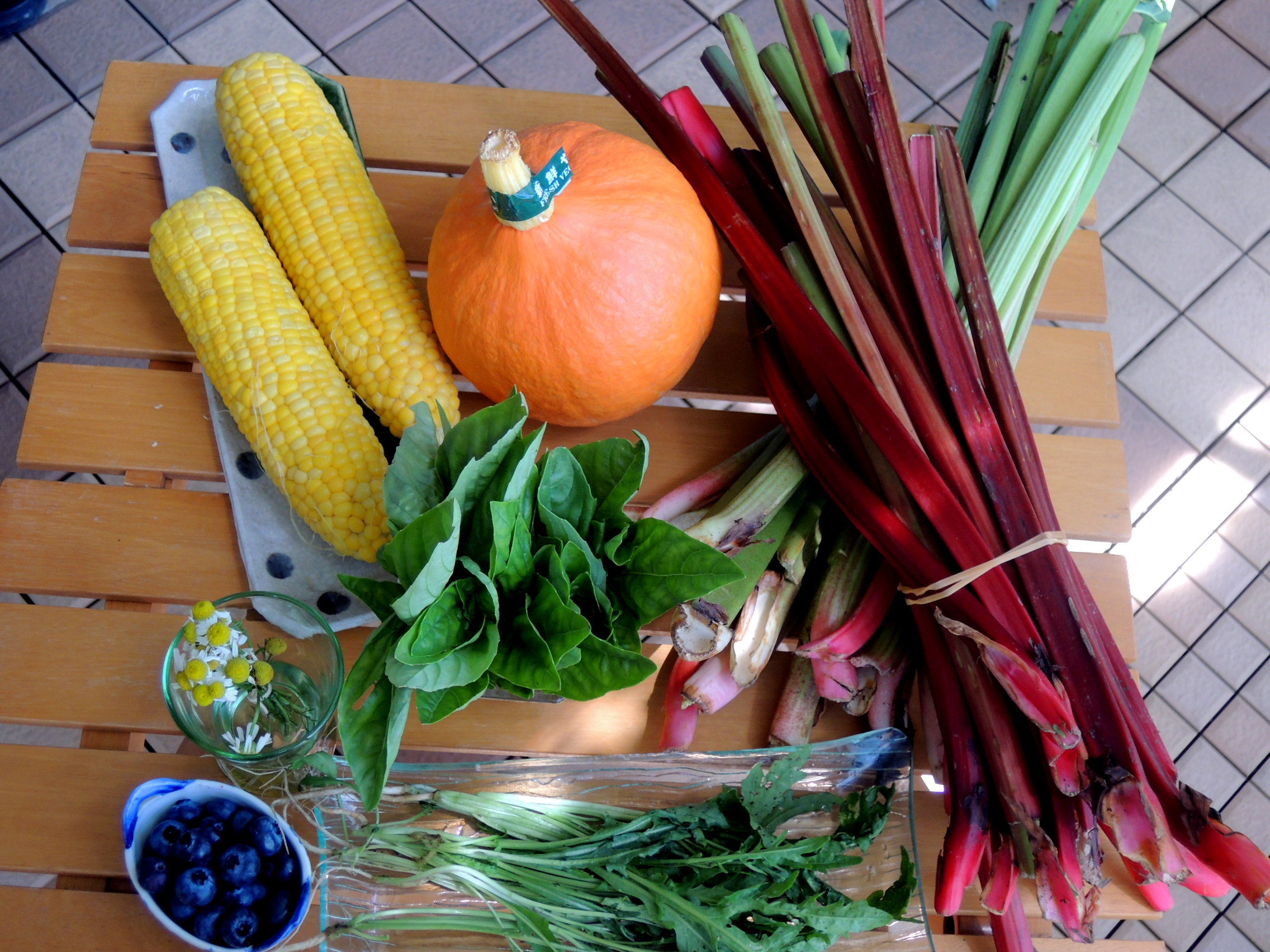 残っていた野菜と庭のしその穂で