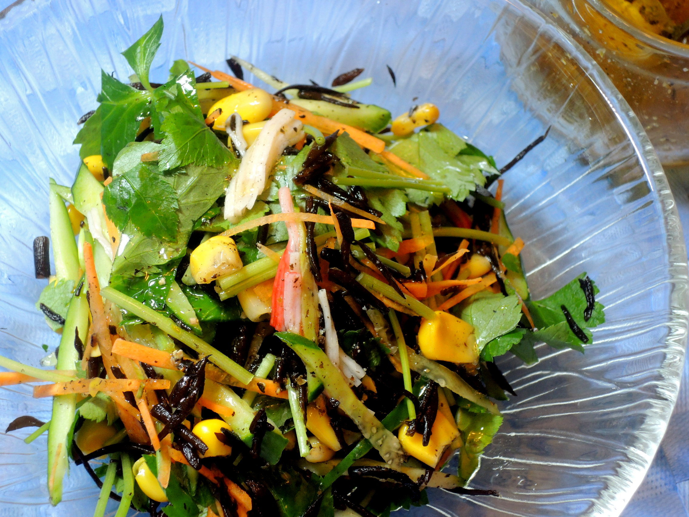 1)リンゴは綺麗に洗って、皮ごと千切りにして、レモン汁で和えておく
